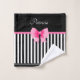 Pink Ribbon Black & White Stripes Pattern Name Bath Towel Set
