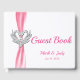 Elegant pink ribbon and silver swans decorate this guestbook. Wedding guest books are fun for both the couple and their celebrants. Invite attendees to leave you well-wishes at your reception, and you're guaranteed to have a keepsake to look back on for years to come. Plus, your guests will get to leave their mark on your event, not to mention put in writing whatever they didn't have a chance to express in person on the big day. Personalise the book by changing the text in the fields provided. You can change font style, size, and colour.