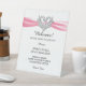 Pink Ribbon Silver Swans Wedding Safety Pedestal Sign