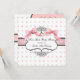 Pink twin watercolor painted bows mixed with elegant French copperplate scrollwork swirls, with pink and green dots in the background are a beautiful and on trend design. All made from original artwork painted by Audrey Jeanne Roberts. On the reverse side there is the same dot pattern and a bracket revealing an offset design layout to place for your baby shower invitation wording.