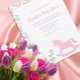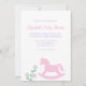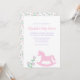 Pretty pink rocking horse with shades of pink and purple next to fun flowers