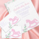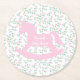 Pink Rocking Horse Girl Baby Shower Round Paper Coaster