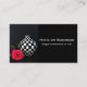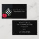 A still life design with a black background featuring a pink rose laying down beside a black and white chequered vase. professional business card design which could be suitable for interior decorators, designers, event planning etc..