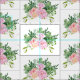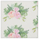 The graphic on this fabric has a beautiful old fashioned look with a bouquet of three pink cabbage roses with fern and eucalyptus greenery.