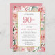 Pink Rose and Hydrangea Floral 90th Birthday Invitation