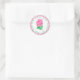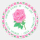 Round stickers with images of beautiful pink roses. The background, image and text can be personalised. Original artwork by W.B.