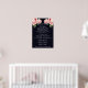 Wedding program sign with a vintage illustration of pink flowers and greenery on a blue background.