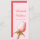 Double-sided single pink rose bud wedding reception dinner menu. If you have any questions or need help fitting your courses into this menu please contact me. Design and photography by Sarah Trett.