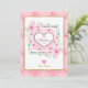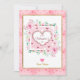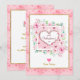 Color Scheme & Patterns: The design uses a soft color palette with various pink hues, white, and touches of green foliage. The inner border and text accents utilize a gold tone. The background of the card and the central square feature subtle heart and polka dot patterns.