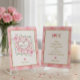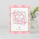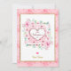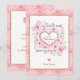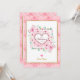 Colour Scheme & Patterns: The design uses a soft colour palette with various pink hues, white, and touches of green foliage. The inner border and text accents utilise a gold tone. The background of the card and the central square feature subtle heart and polka dot patterns.