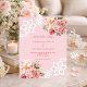 For an elegant and romantic wedding. A soft pink background decorated with pink and rose gold florals, roses and lace. Personalise and add your names and details.