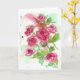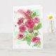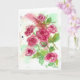 A pretty blank greeting card featuring a watercolor painting of pink miniature roses from the summer victorian cottage garden.