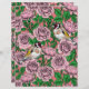 Hand drawn vector pattern with rose flowers and goldfinch birds. All elements for the pattern are drawn first with ink on paper then redrawn and coloured in Illustrator.