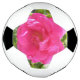 A Soccer Ball with a Picture of a Pink Rose on it.