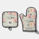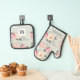 Pink Rose Garden Flower Pattern Oven Mitt & Pot Holder Set