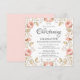 Chic gold leaves form a modern botanical frame. Pink watercolor roses and rosebuds are nestled in the golden foliage. Christening is written in a large script. Your daughter's name is written in all capital letters. The remainder of the celebration details are in a simple text font. The result is an open and airy floral design.