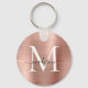 Pink Rose Gold Brushed Metal Girly Script Monogram Keychain