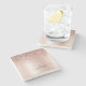 Pink Rose Gold Brushed Metal Monogram Name Stone Coaster