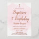 Pink Rose gold cross Baptism and 1st birthday Foil Holiday Card
