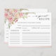 Pink, Rose Gold Floral Bridal Shower Recipe Card