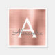 Pink Rose Gold Faux Foil Girly Stainless Steel Elegant Monogram Birthday Party Napkins. This Birthday Party Napkins can be customised to include your initial and first name.