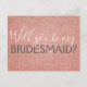 Pink Rose Gold Faux Glitter and Sparkle Elegant Will You be my Bridesmaid? Postcard.