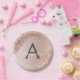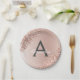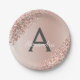 Pink Rose Gold Glitter & Sparkle Monogram Birthday Paper Plate