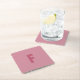 Pink Rose Gold Letter F Monogram Square Scalloped Paper Coaster