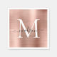 Pink Rose Gold Monogram Girly Script Brushed Metal Napkin