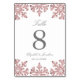 Pink Rose Gold Snowflake Winter Wedding Table Number