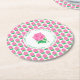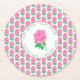 Paper coasters with images of beautiful pink roses. The background, image and text can be personalised. Original artwork by W.B.