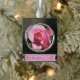 Pink Rose III Garden Floral Silver Plated Banner Ornament