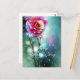 Pink rose in rain valentine postcard
