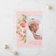 Elegant birth announcement template card featuring floral illustrations of pink roses, lavender and green foliage on the front. The back reveals a pink polka dot background. There are 3 pictures of your newborn that can be added on this card (front and back). Perfect card to announce the arrival of your new baby with his/her birth stats. Great for both baby boy and girl. Perfect for summer and spring seasons!