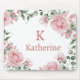 Pink Rose Monogram Name mousepad with 'Year Established' custom inscription.