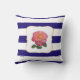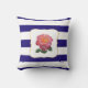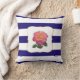 Elegant pink rose on navy blueand white striped throw pillow. A beautiful rose to nurture your spirit! Elegant decorative pillows. Beautiful stylish home decor.