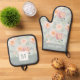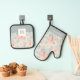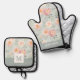 Pink Rose Pastel Garden Pattern Oven Mitt & Pot Holder Set