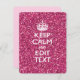 Your humourous personalised Keep Calm saying on a fine custom pink style decor. A personalised Keep Calm style saying. Humourous or whimsical try on your creative words on two editable lines of text. Remember to use CAPITAL letters for best results.