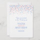 Modern graphic random polka dot confetti effect wedding invitation in rose quartz pink and serenity blue hues. A simple contemporary, wedding invitation featuring falling confetti style dot graphic art. Perfect for a modern wedding. Edit this invitation with your own words. Design and graphics by Sarah Trett.