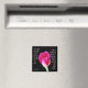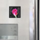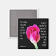 A bright floral magnet (stunning pink rose bloom on black background) with verse from Jeremiah 29:11.