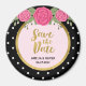 Chic Floral Save the Date round magnet featuring a faux gold border, black and white polka dot and some pink roses. Save the Date magnets are a great way for guests to remember your special date. Check out the matching Save the Date invitation in my store here -> http://www.zazzle.com/black_white_stripes_roses_wedding_save_the_date_card-256251464667911838?rf=238364477188679314