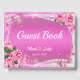 Pink roses and white pearls decorate this guestbook. Wedding guest books are fun for both the couple and their celebrants. Invite attendees to leave you well-wishes at your reception, and you're guaranteed to have a keepsake to look back on for years to come. Plus, your guests will get to leave their mark on your event, not to mention put in writing whatever they didn't have a chance to express in person on the big day. Personalize the book by changing the text in the fields provided. You can change font style, size, and color.