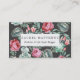 Pink Roses and Succulent Cactus Pattern on Black Business Card