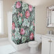 Pink Roses and Succulent Cactus Pattern on Black Shower Curtain
