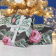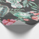 Pink Roses and Succulent Cactus Pattern on Black Wrapping Paper