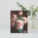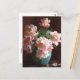 A fine art postcard with the painting by the American artist Charles Courtney Curran (1861-1942), titled Pink Roses. A turquoise vase with a lovely bouquet of flowers.