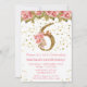 Pink Roses Floral 6th birthday party invitation for a 6 year old girl with modern script writing and gold glitter.