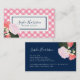 Pink Roses Floral and Pink Gingham Business Card