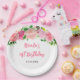 Pink Roses Floral Birthday Paper Plate