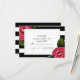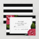 Pink Roses Floral Black + White Stripe RSVP Card